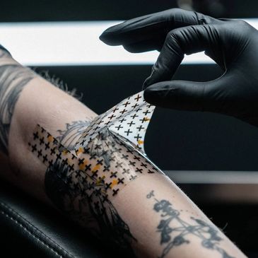 If replacement needed, gently clean and pat dry the tattoo and surrounding area, ensuring there is no soap or residue on skin.